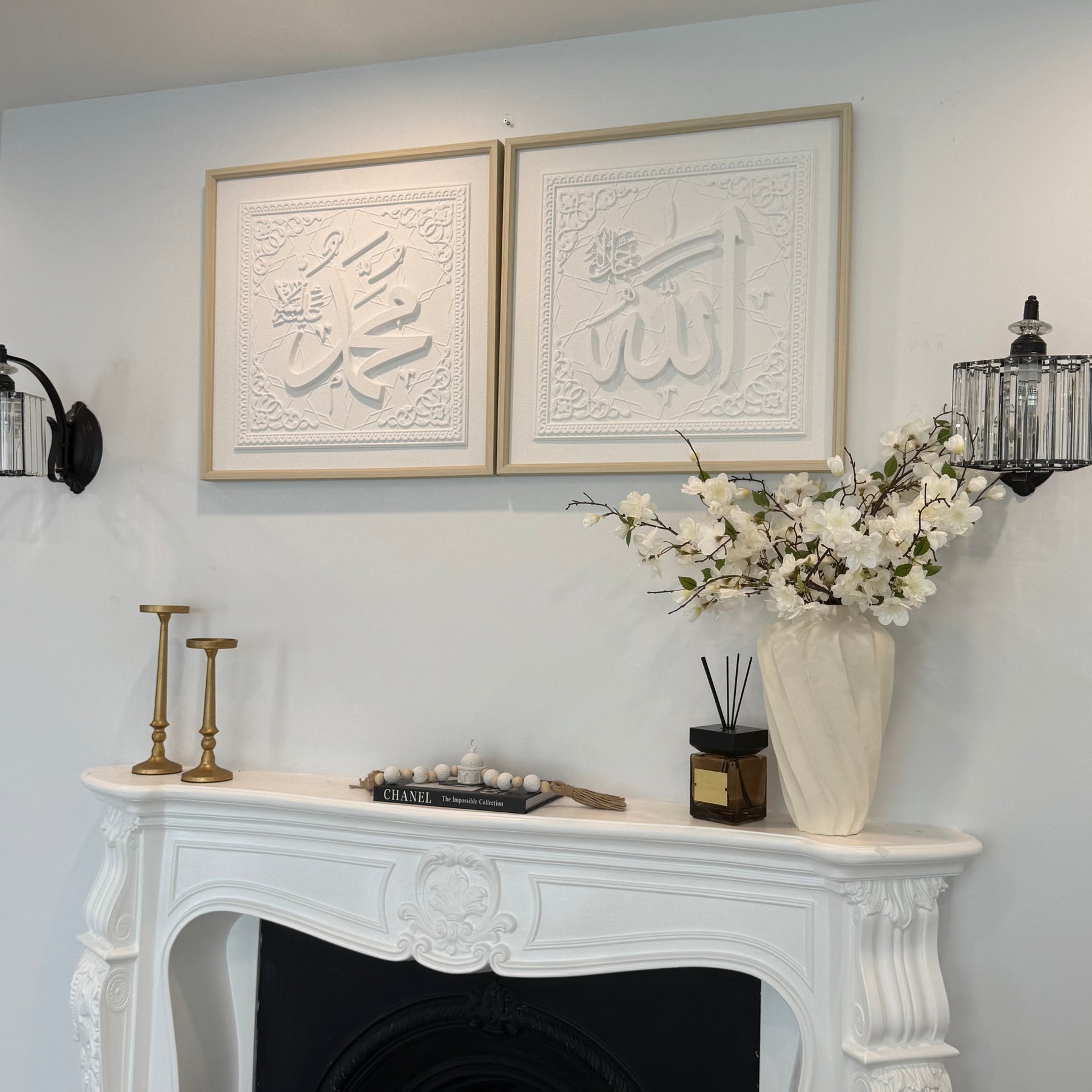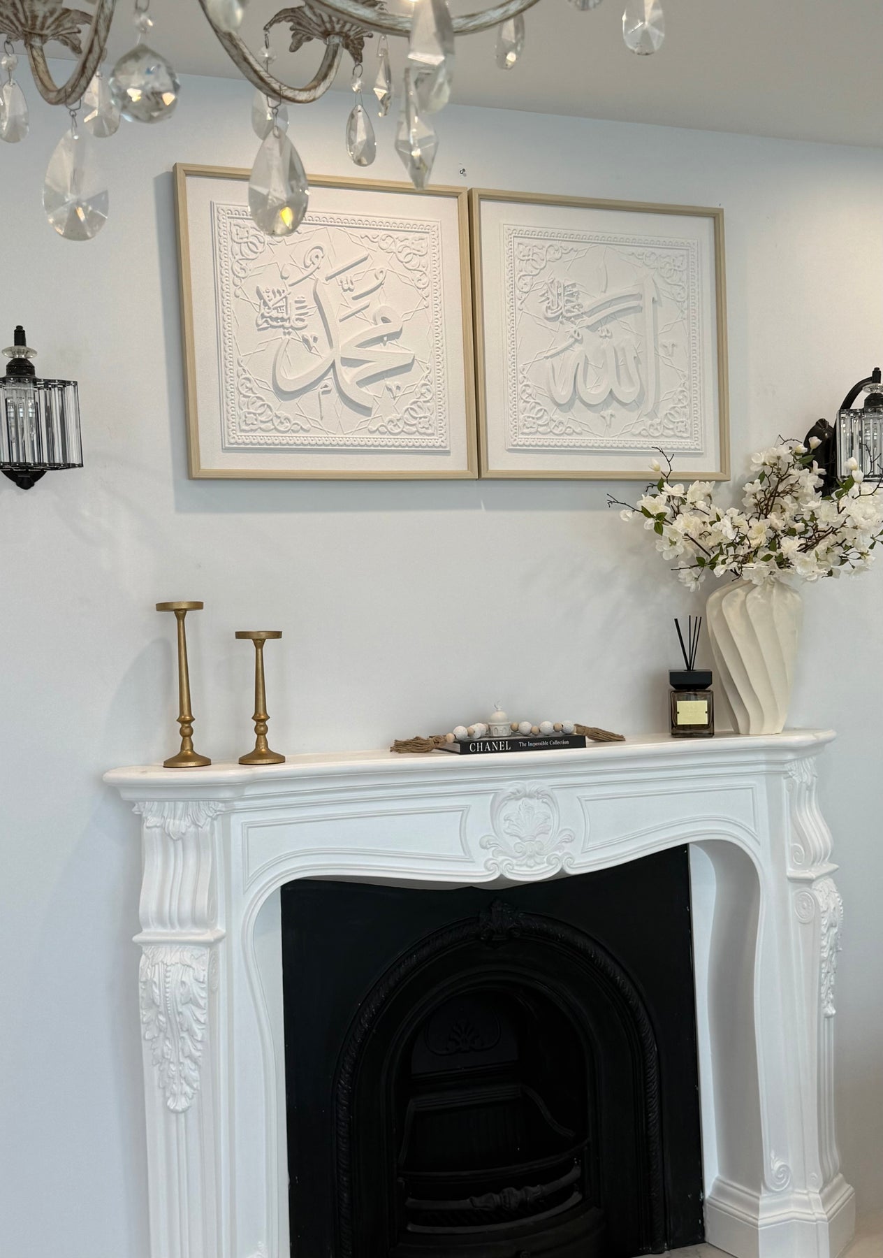 Stone effect Allah & Mohammed set of 2 wall light frames