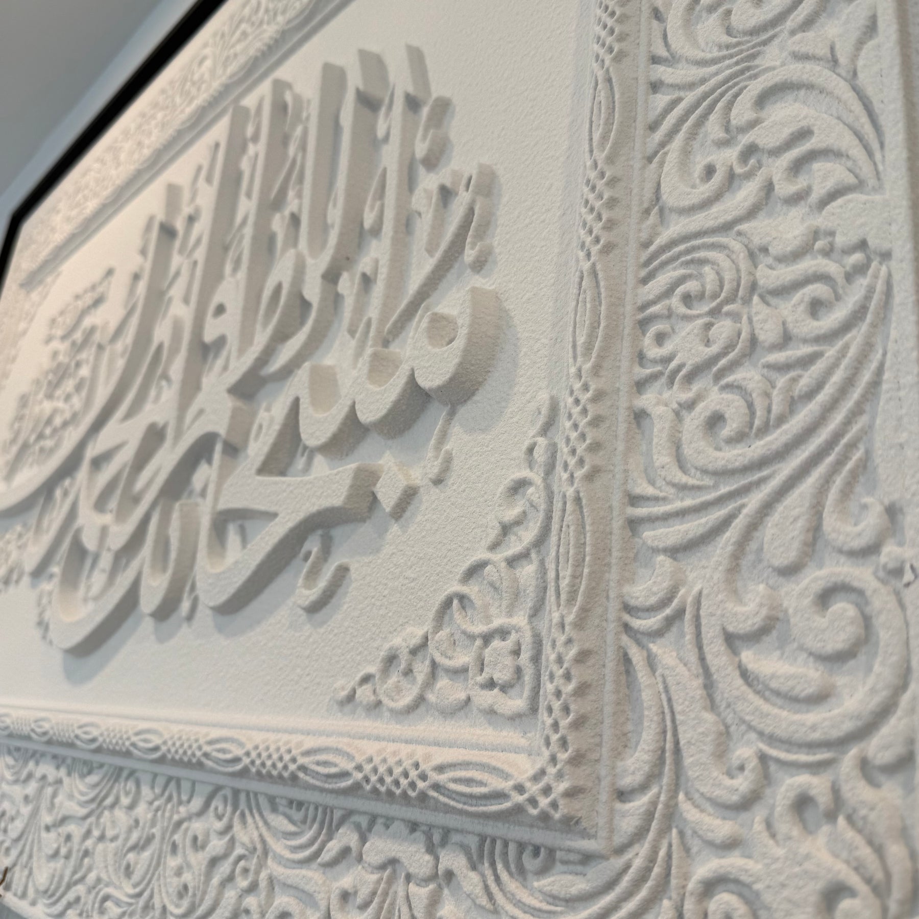 Stone effect calligraphy wall art black frame "Glorious You are O Allah, and with Your praise, and blessed is Your Name, and exalted is Your majesty, and none has the right to be worshipped but You."