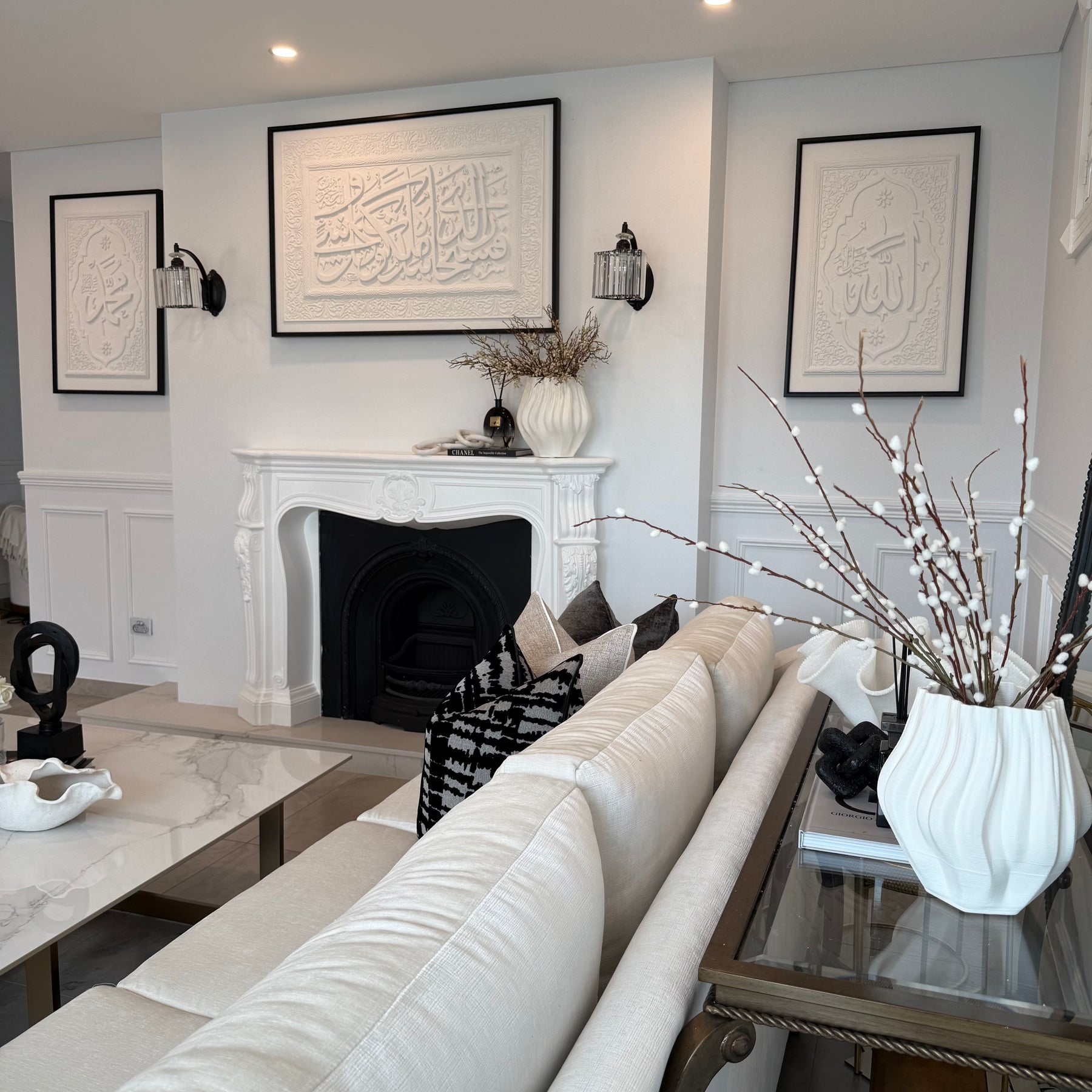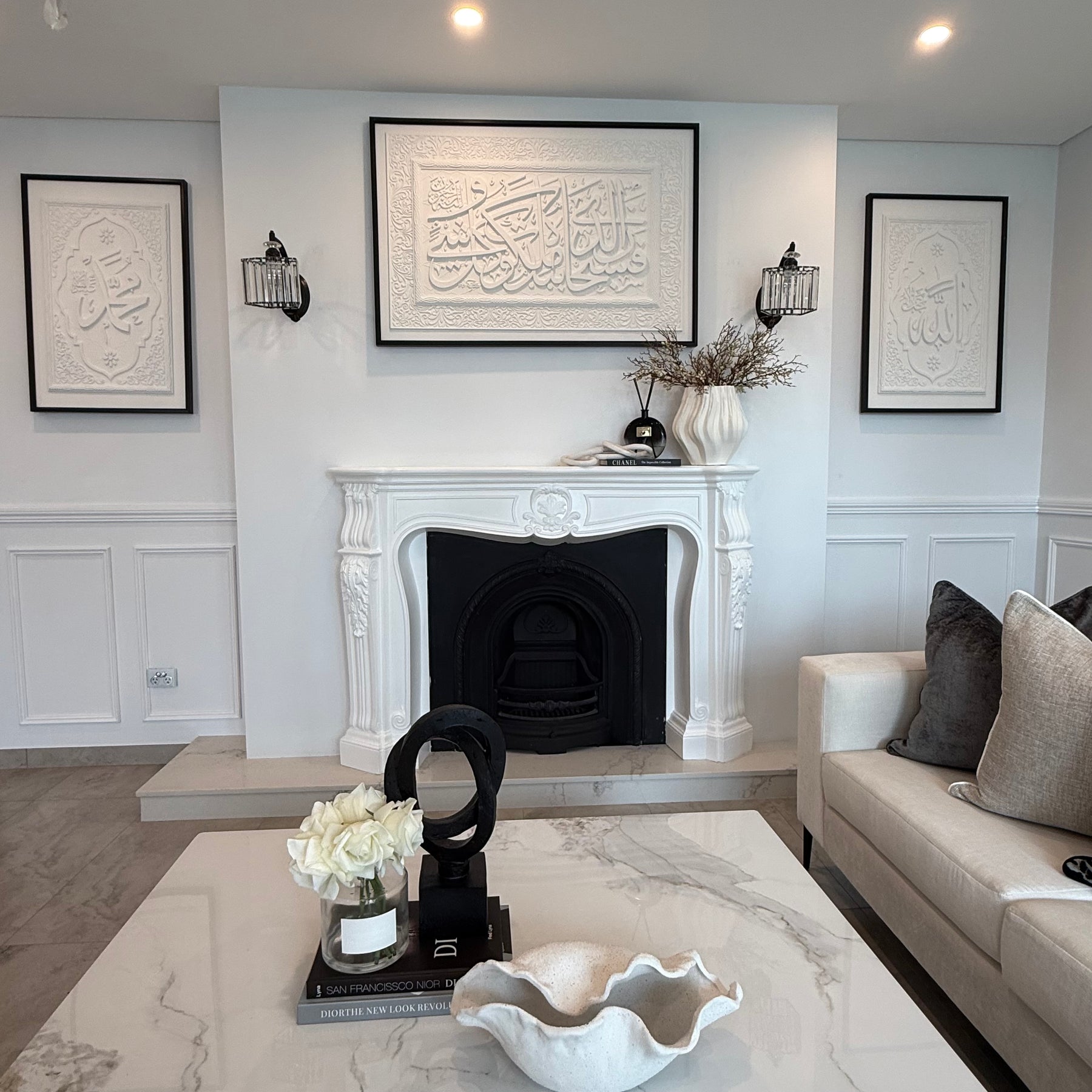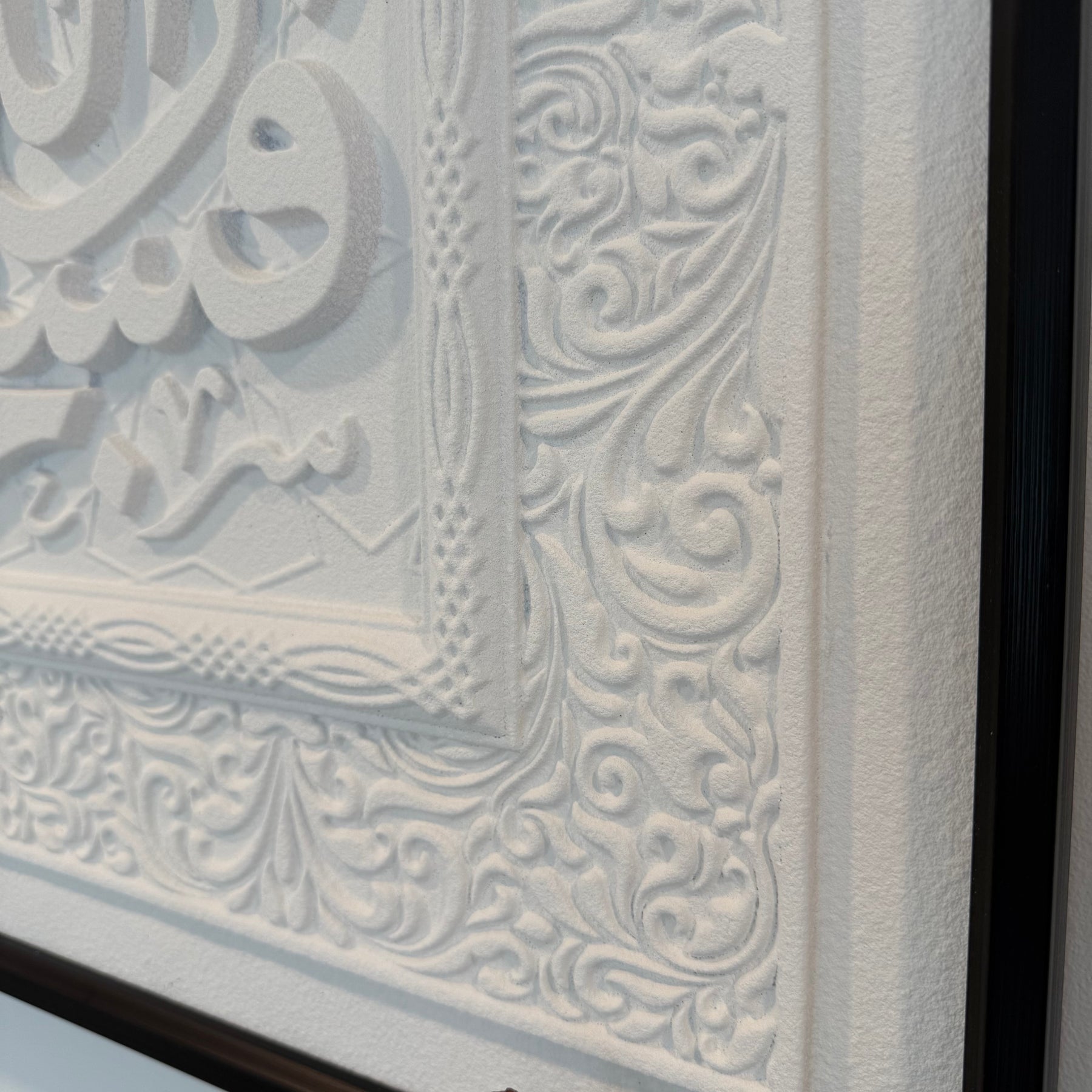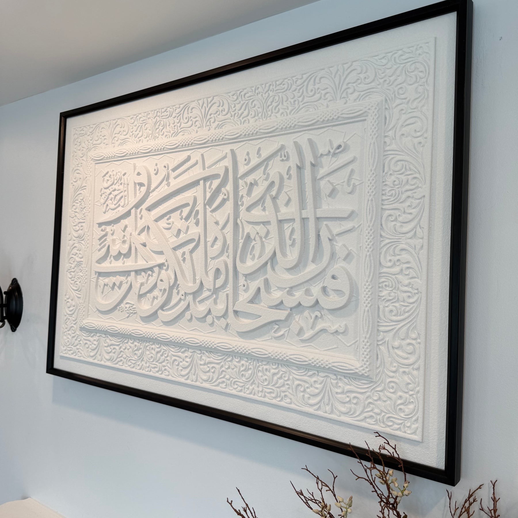 Stone effect calligraphy wall art black frame Surah Yasin (36:83) Glory be to Him in whose hand is the dominion of all things, and to Him you will be returned.