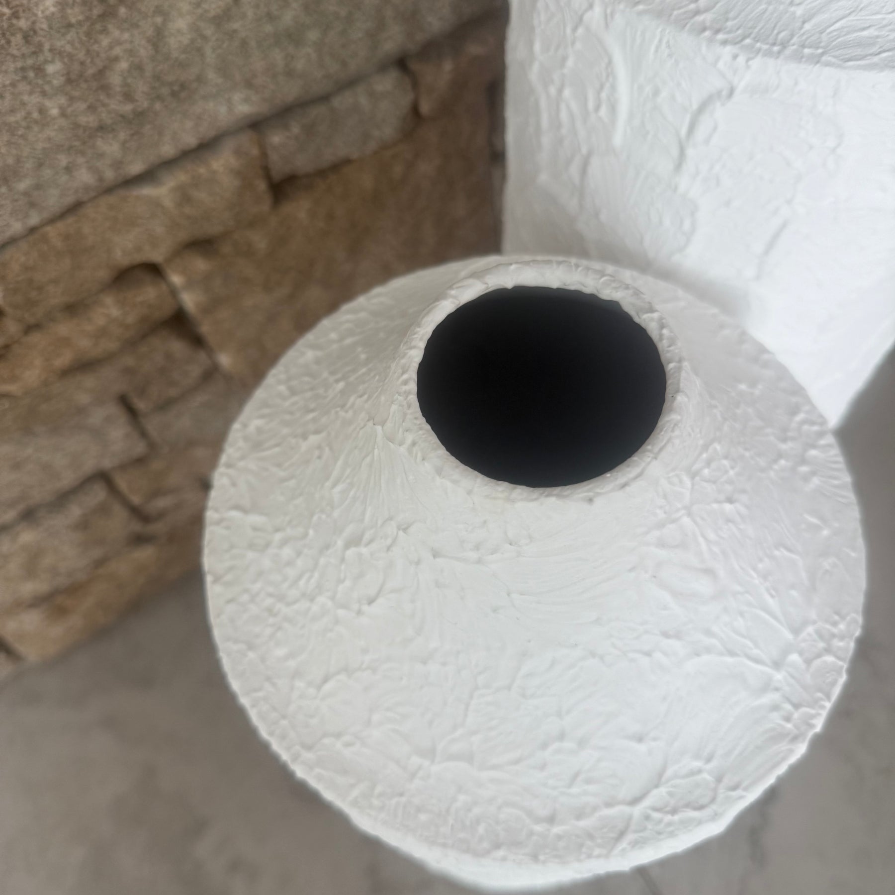 White stone effect floor vases