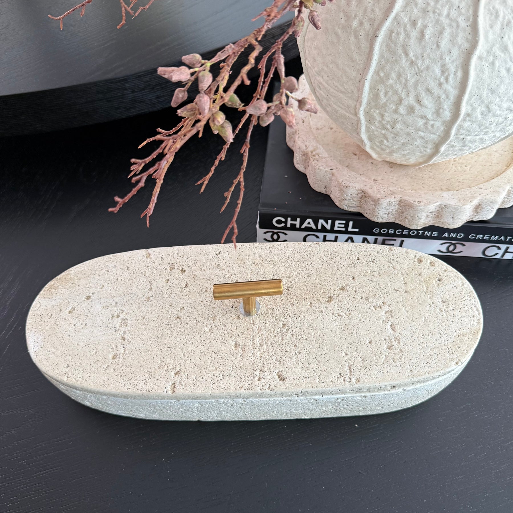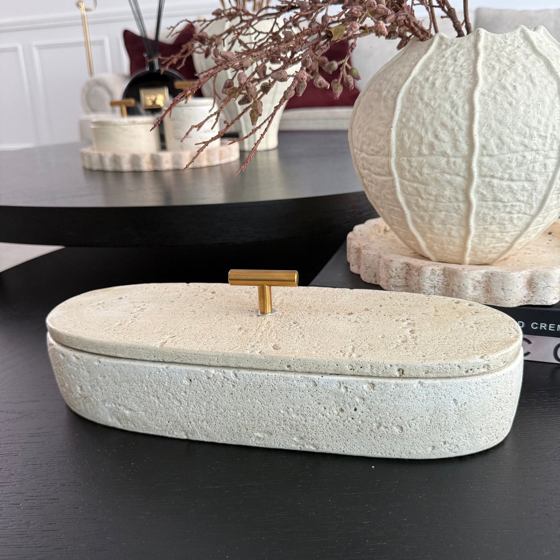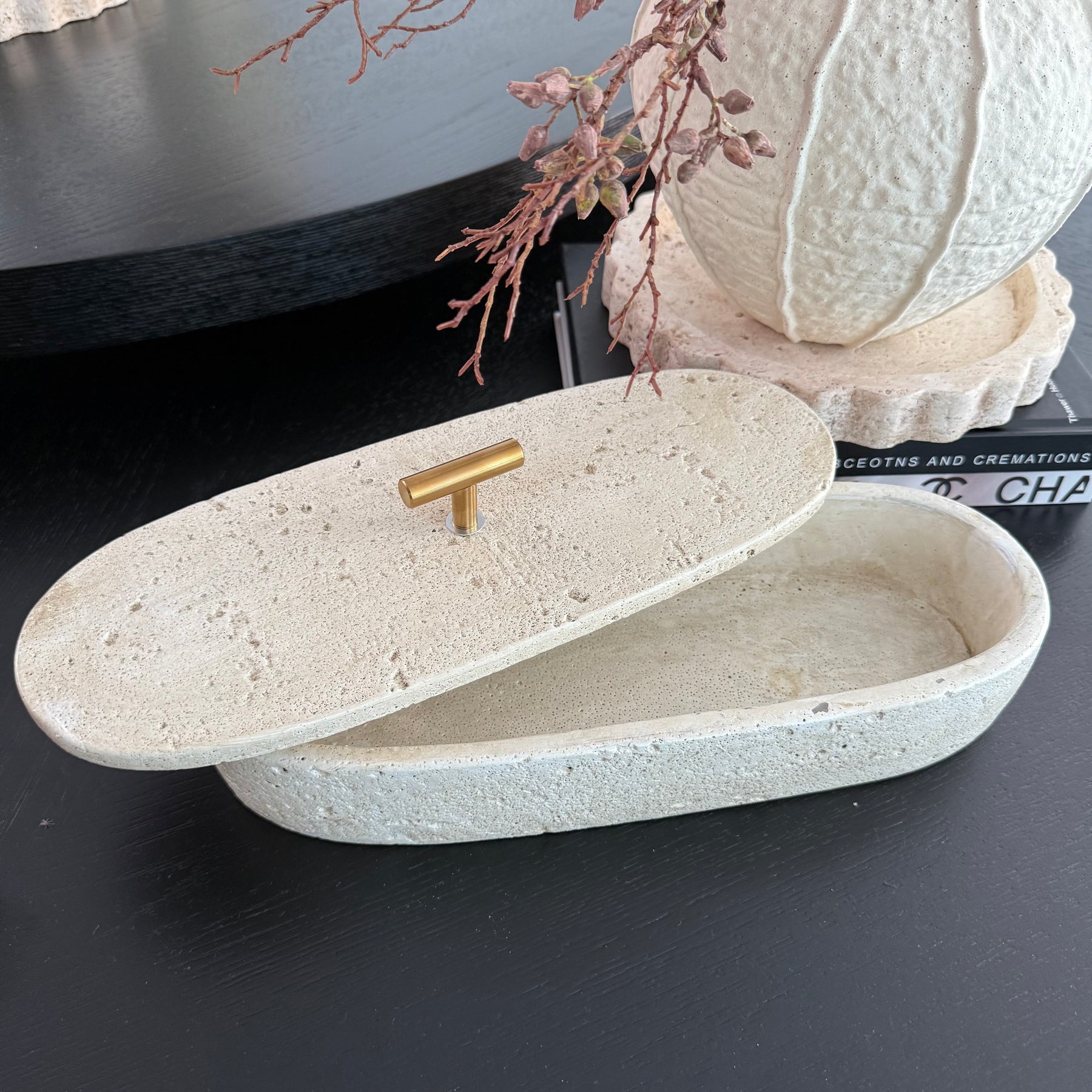 Concrete texture large  oval box gold handle - Luscious Homewares