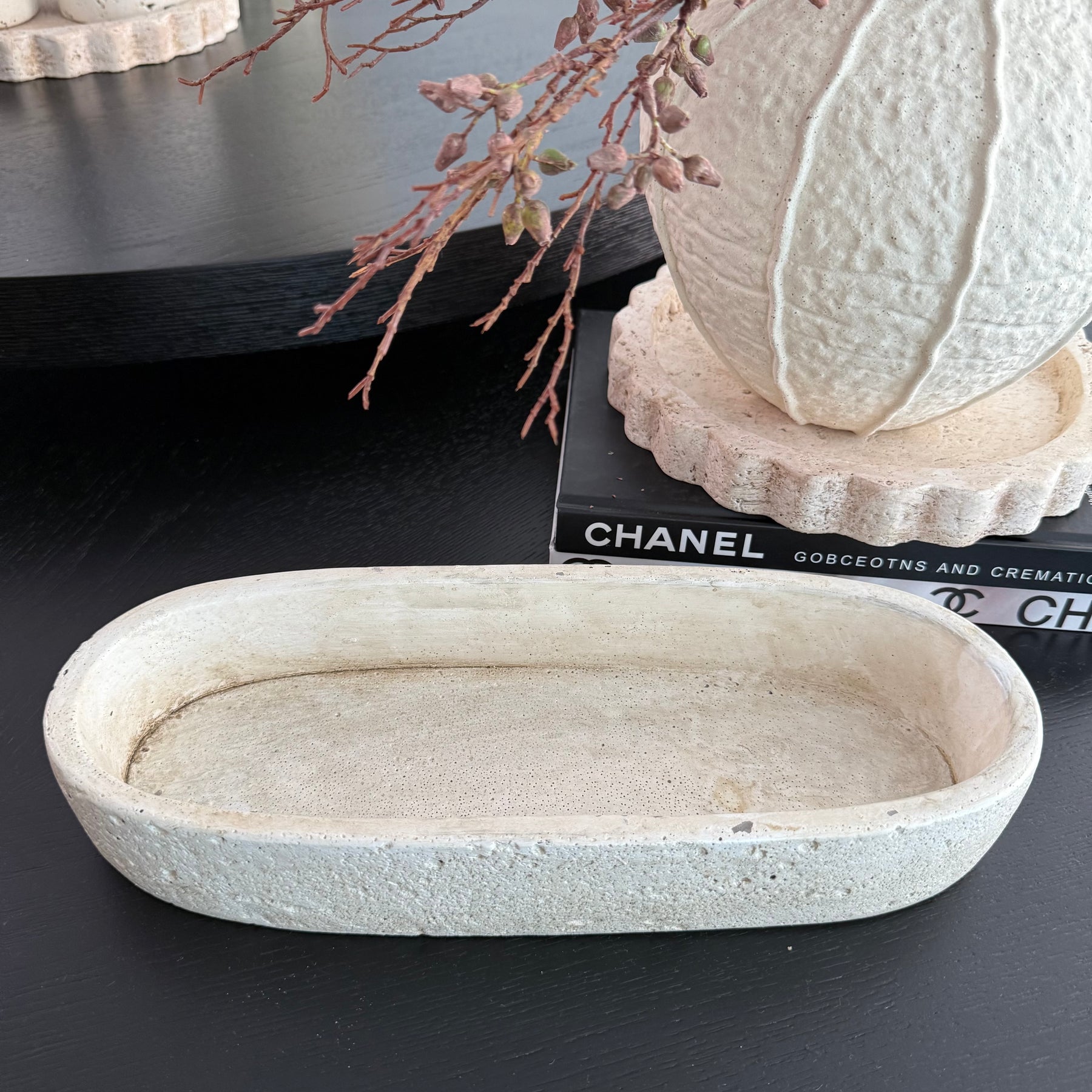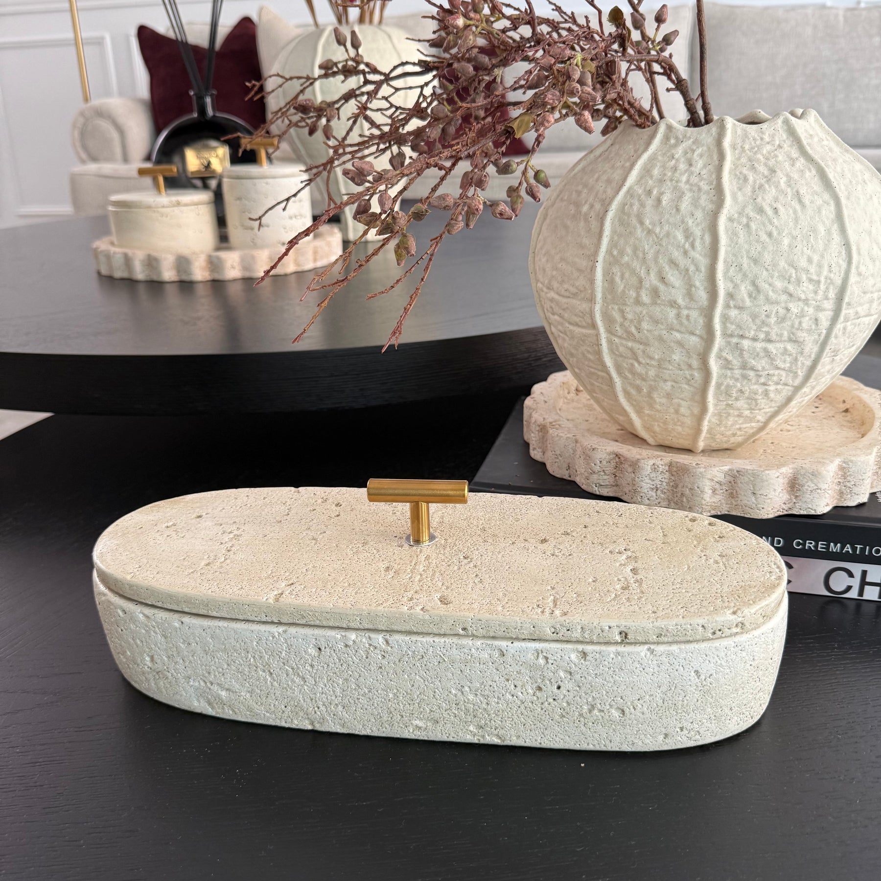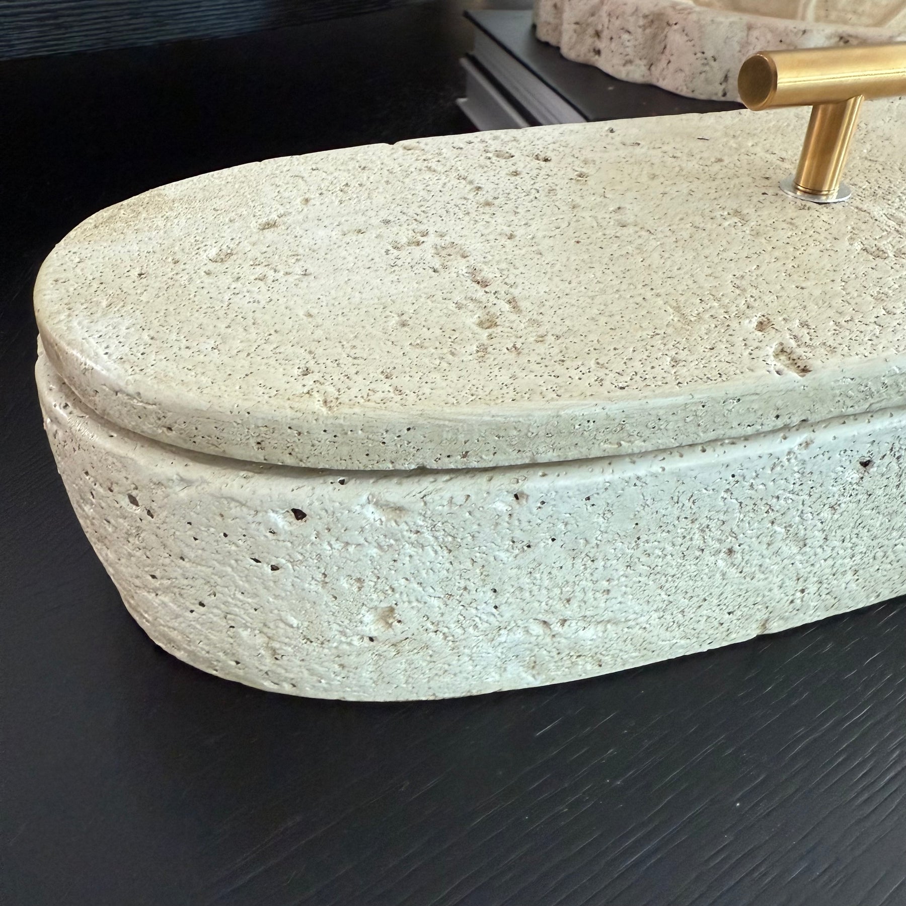 Concrete texture large  oval box gold handle - Luscious Homewares