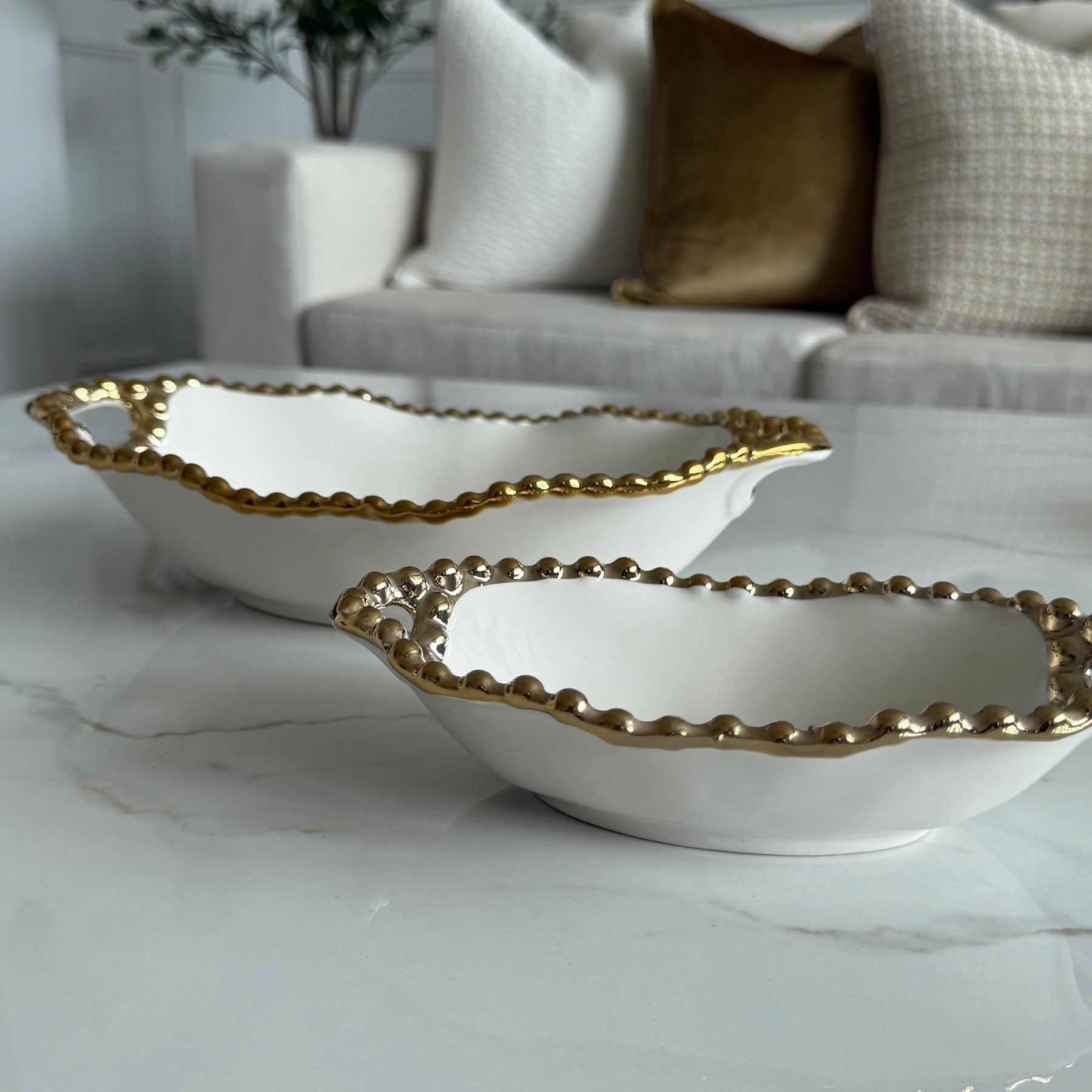Gilded Pearl Oval Handled Serving Bowl