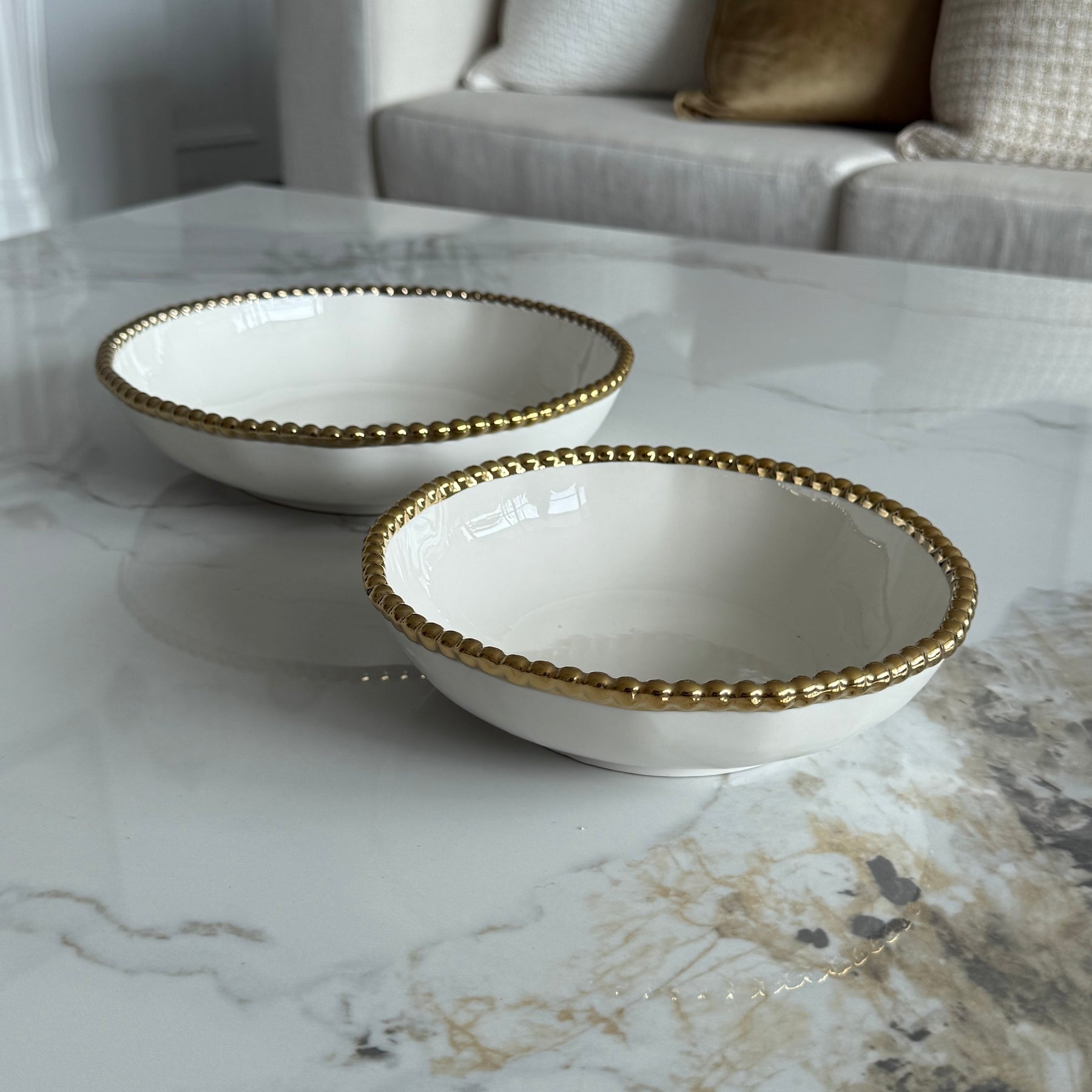 Gilded pearl Shallow Serving Bowls