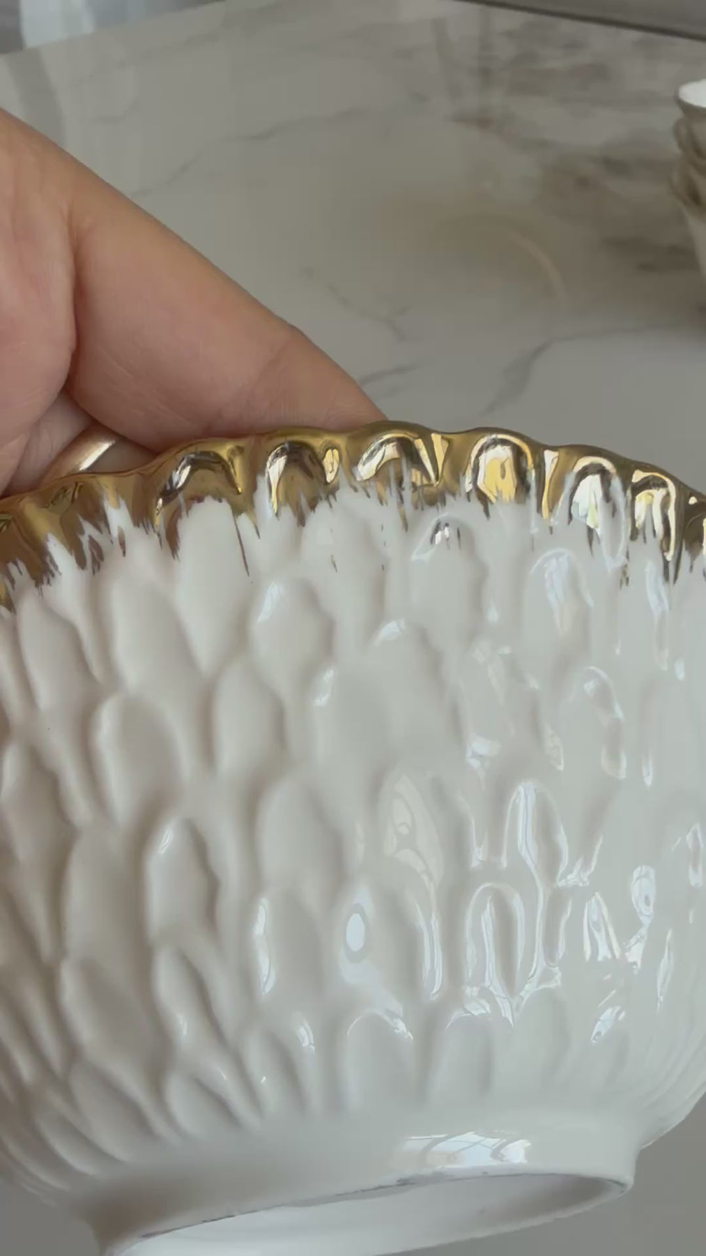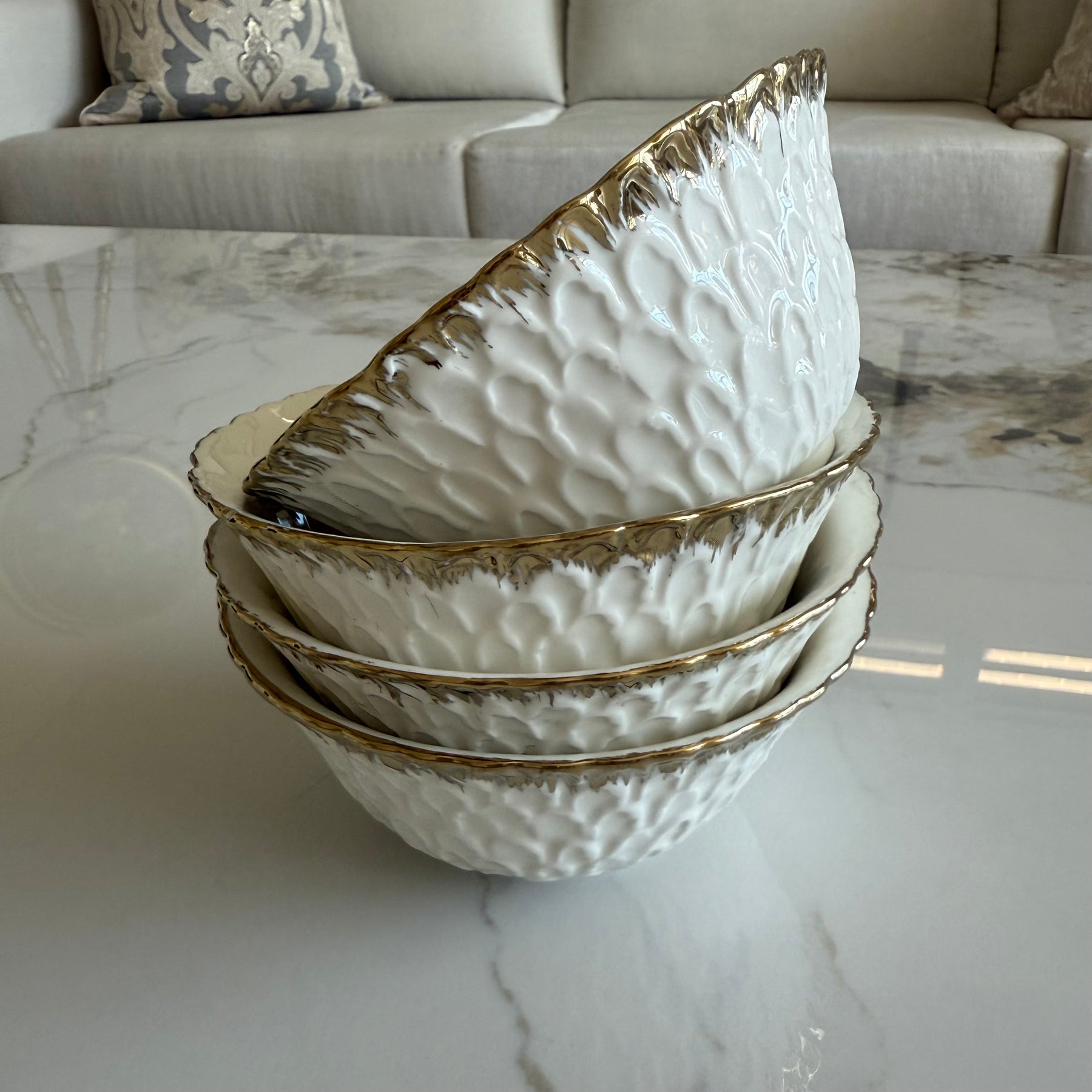 Intricate white and gold round bowls 2 piece set .