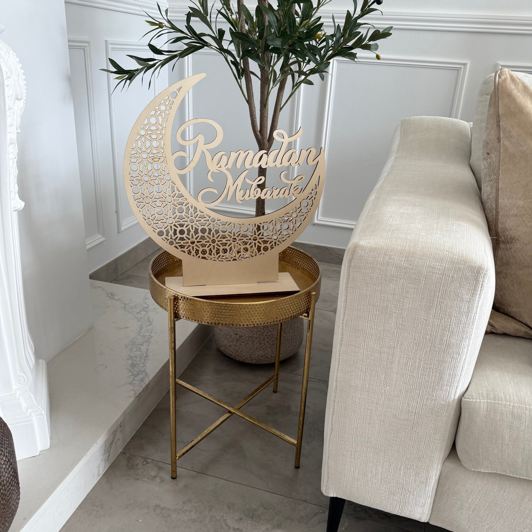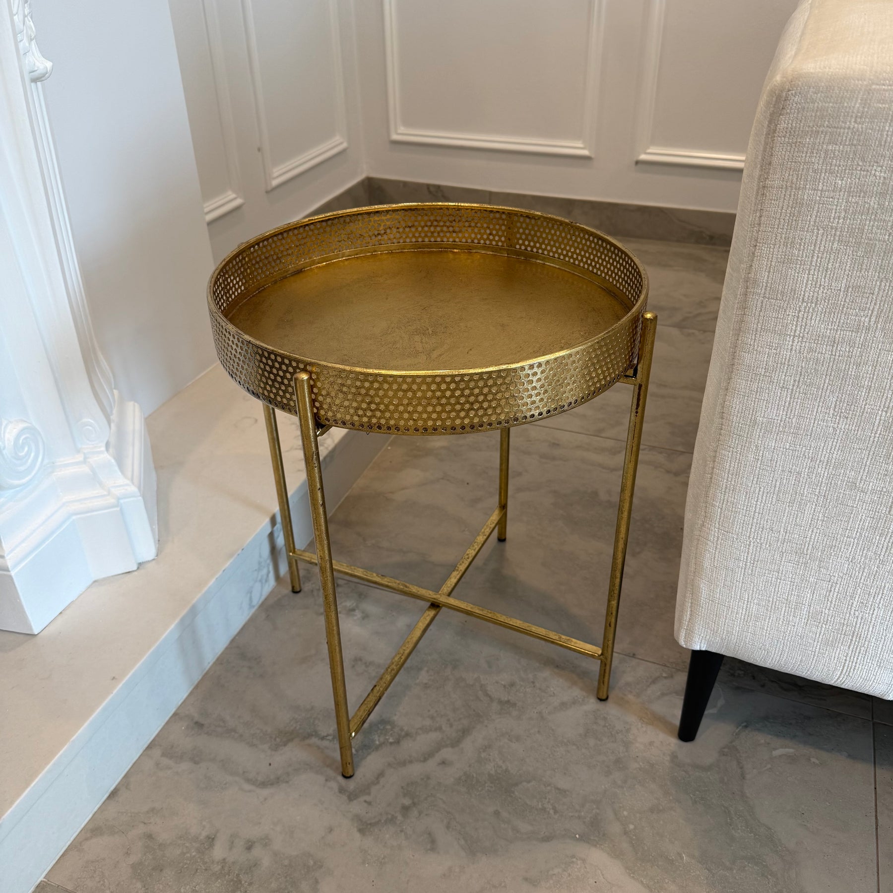 Gold Metal tray round side table - Luscious Homewares