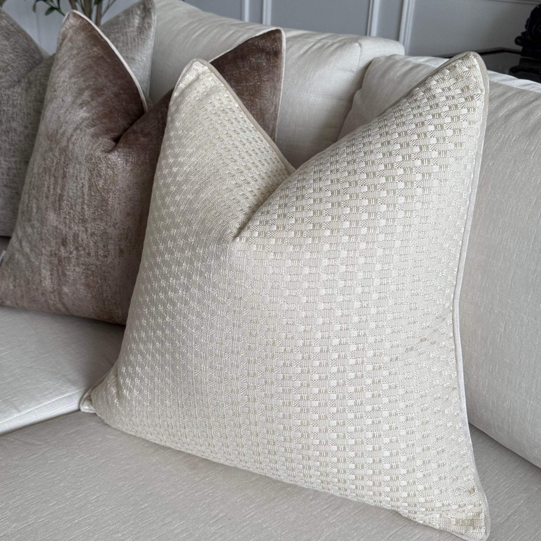 Pillar Gold tweed cushion - Luscious Homewares