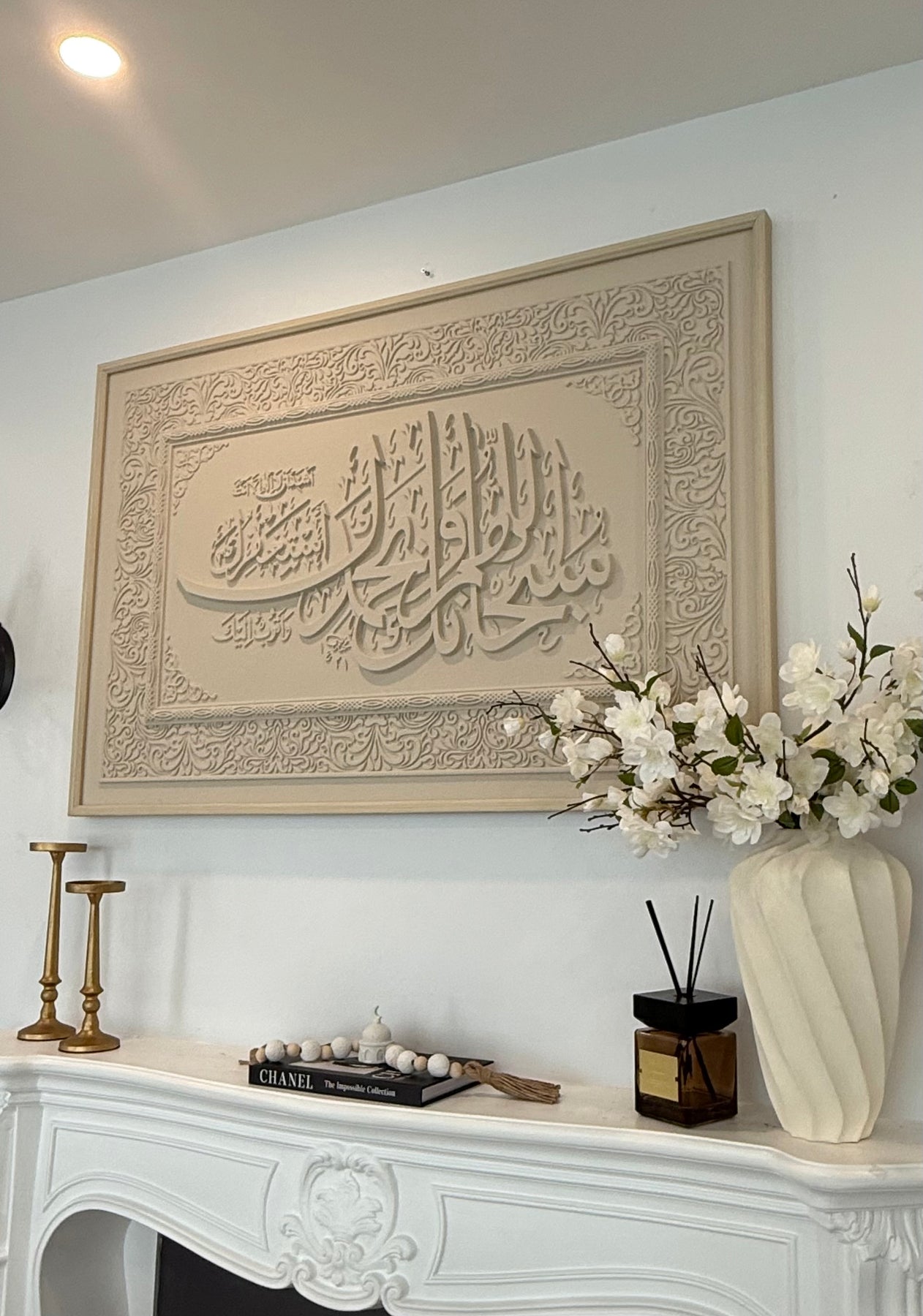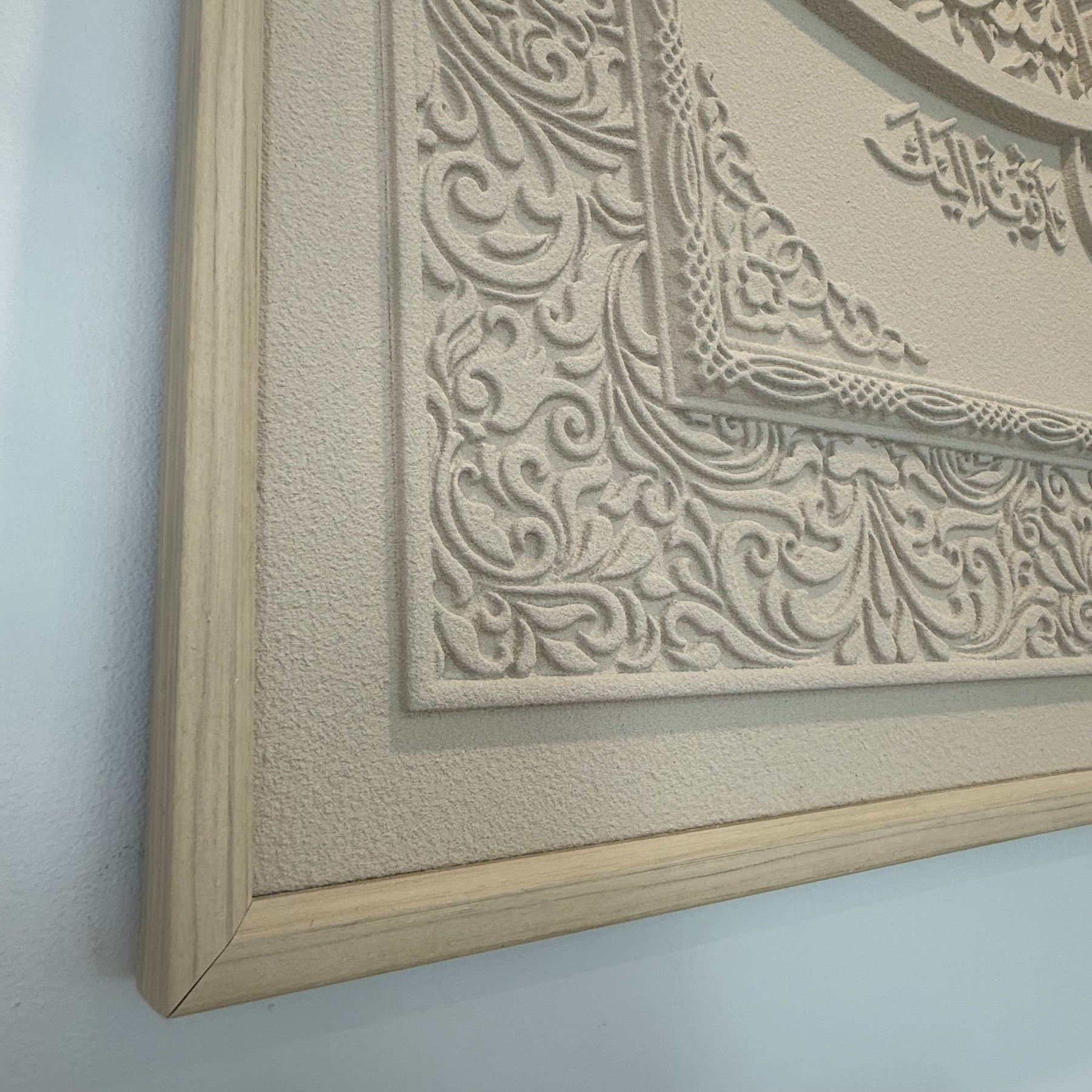 Stone effect beige calligraphy wall art light frame "Glorious You are O Allah, and with Your praise, and blessed is Your Name, and exalted is Your majesty, and none has the right to be worshipped but You."