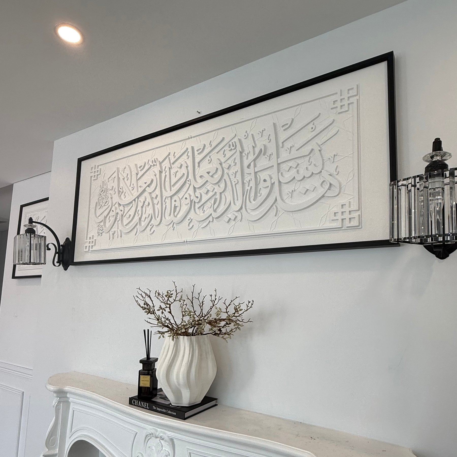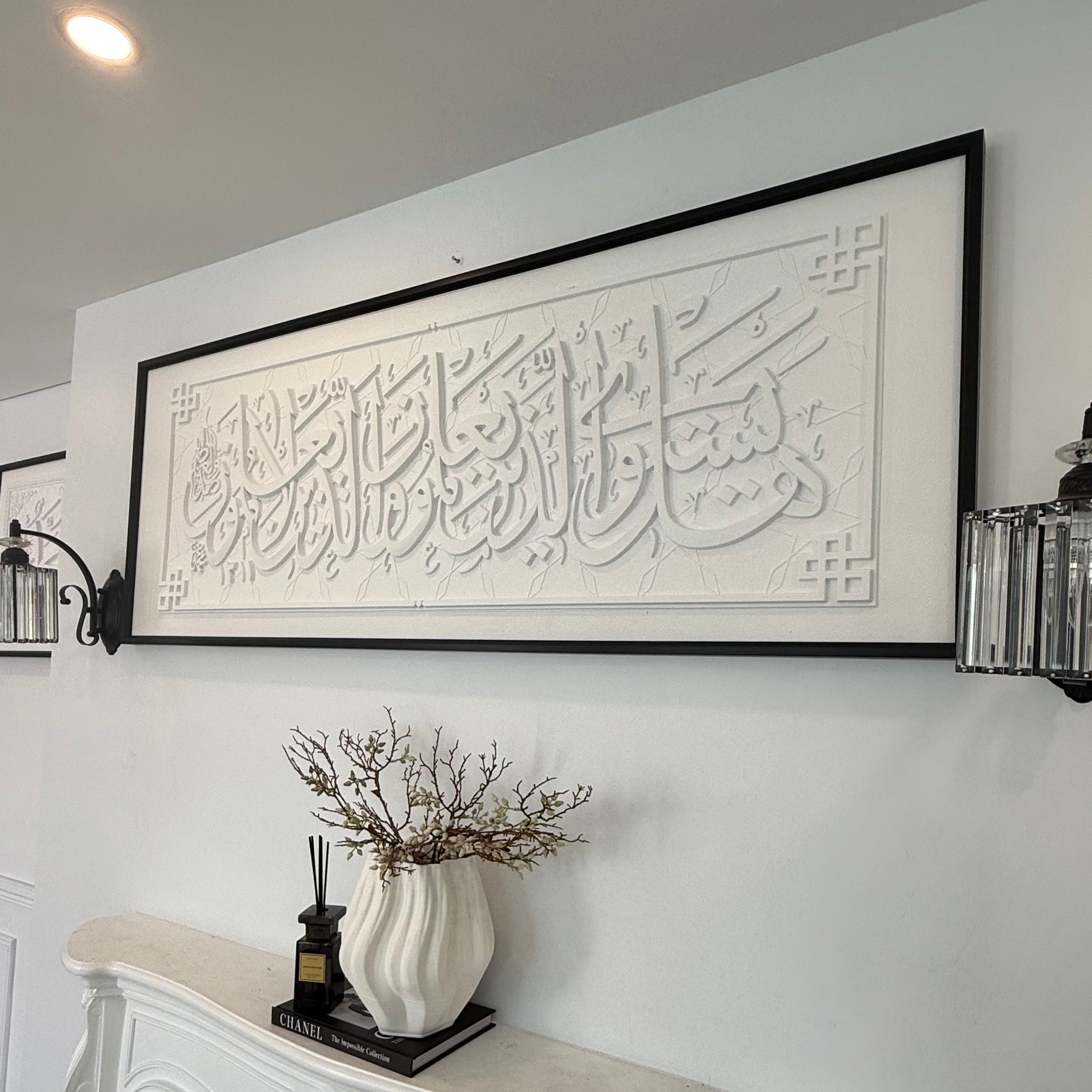 Stone effect calligraphy wall frame black Surah Az-Zumar (39:9) Are those who know equal to those who do not know?