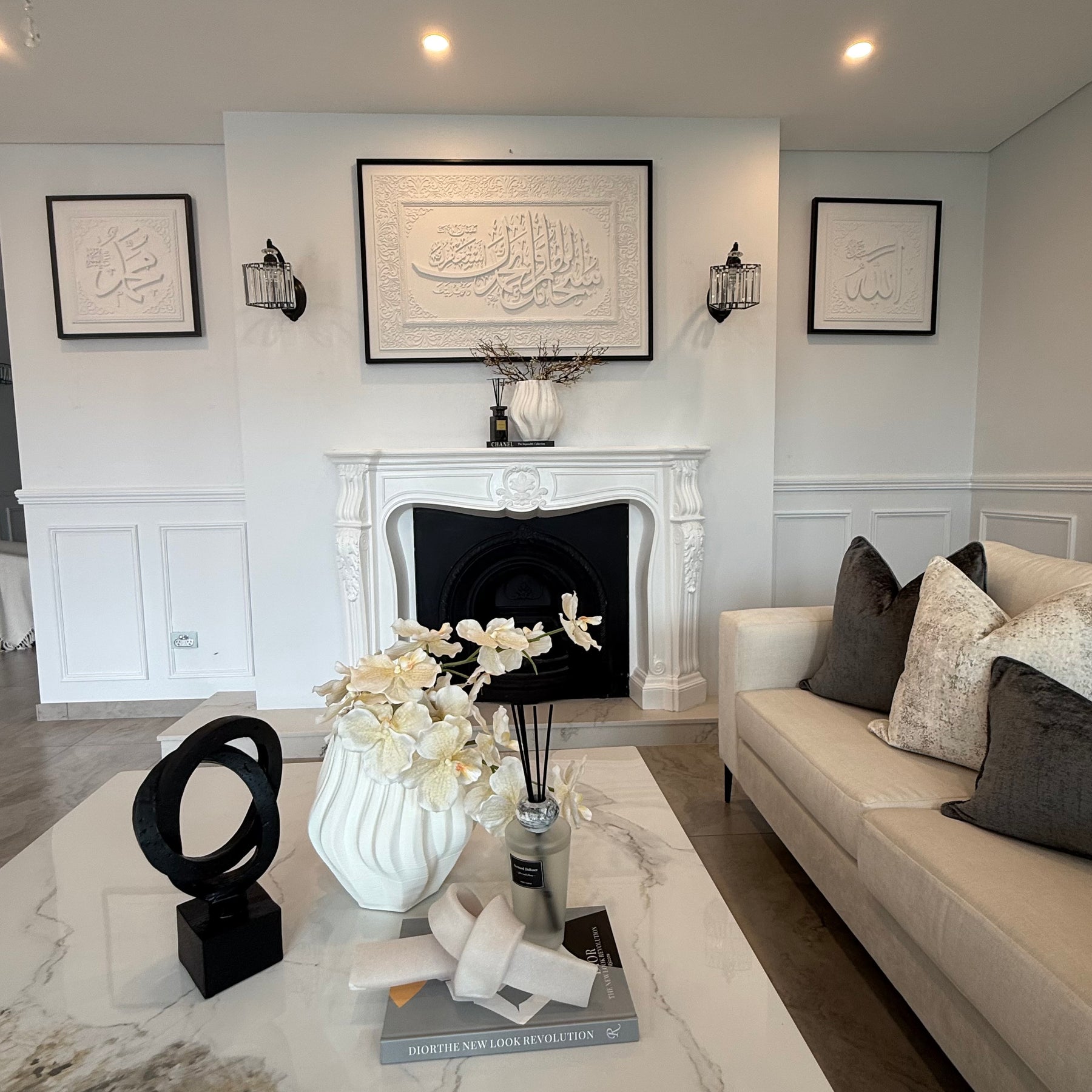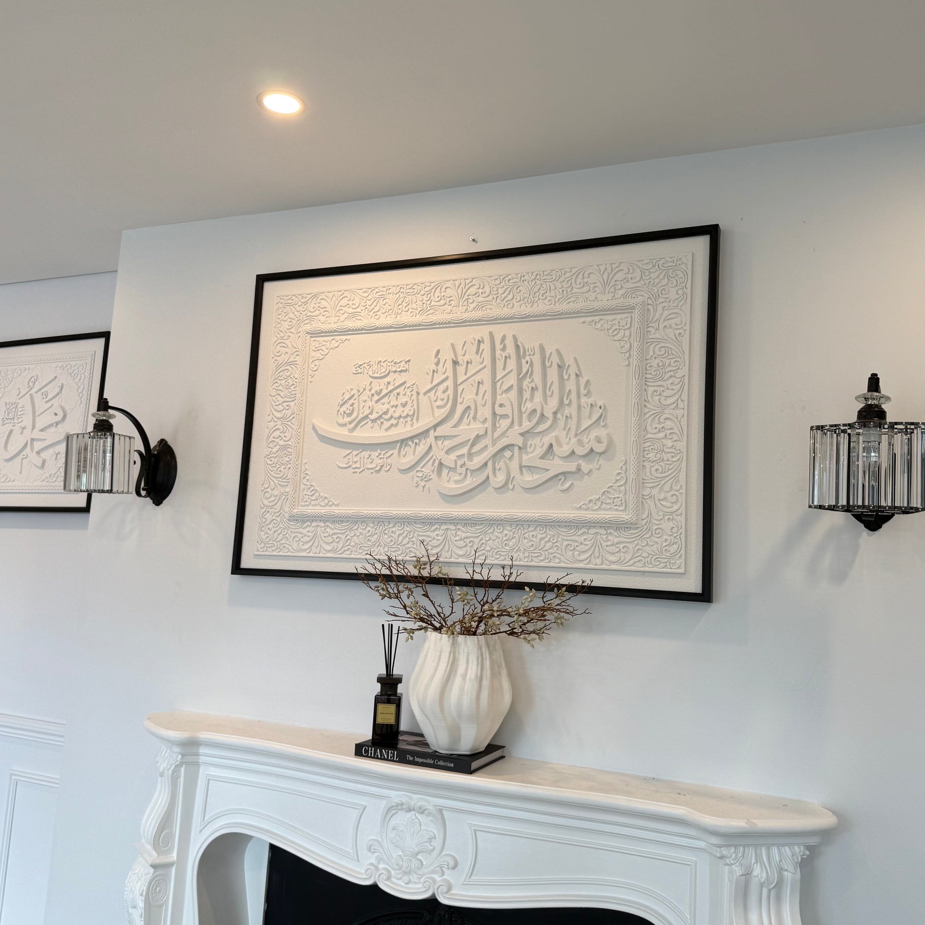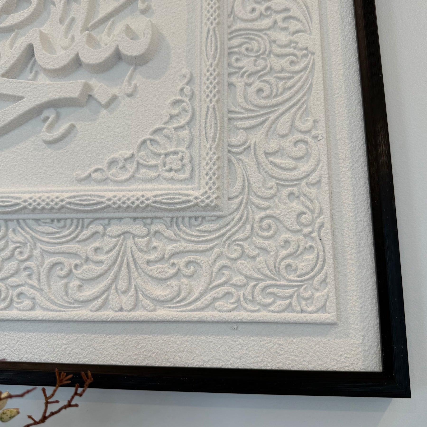 Stone effect calligraphy wall art black frame "Glorious You are O Allah, and with Your praise, and blessed is Your Name, and exalted is Your majesty, and none has the right to be worshipped but You."