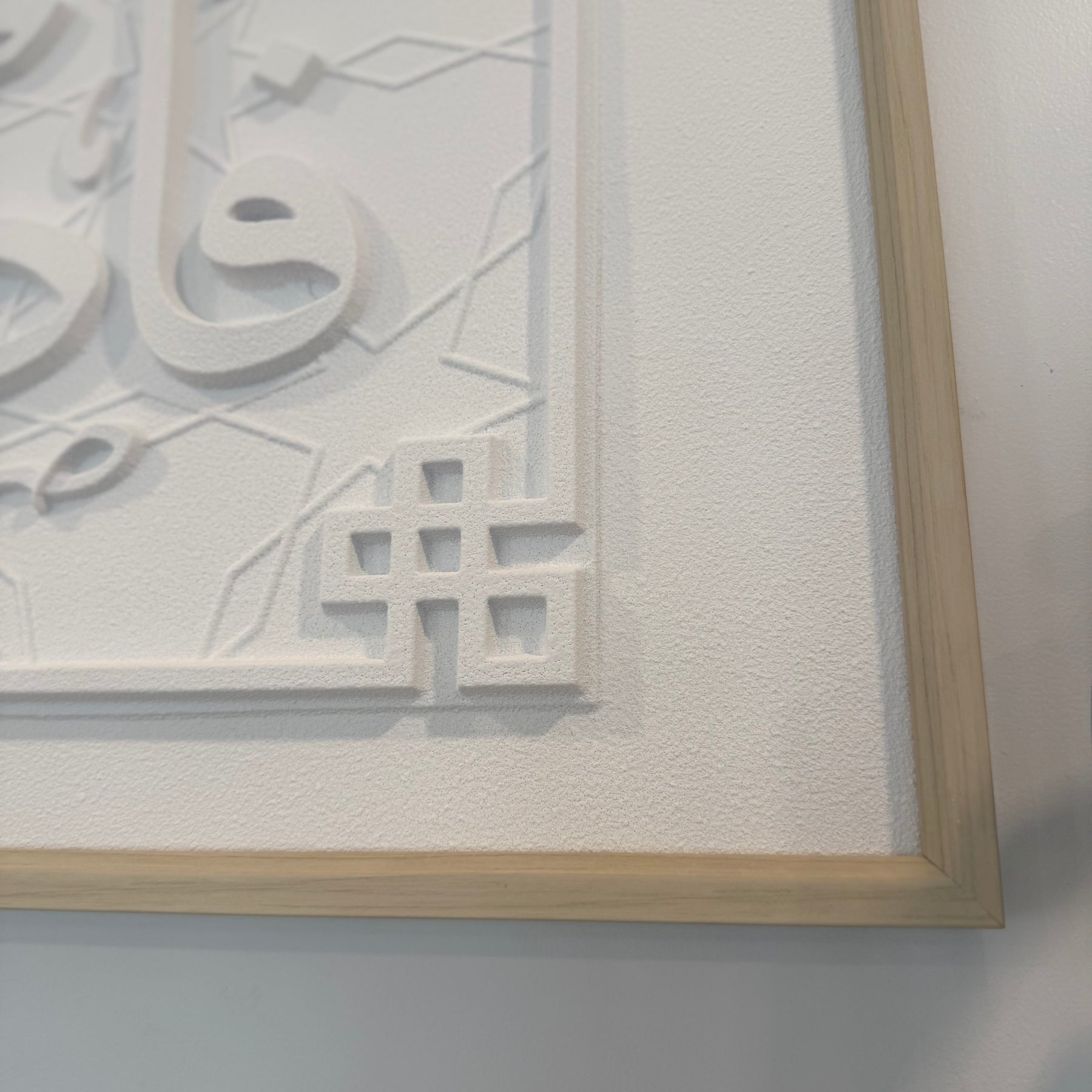 Stone effect calligraphy wall art light frame In the name of God, the Most Gracious, the Most Merciful. [So be patient for the judgment of your Lord.]