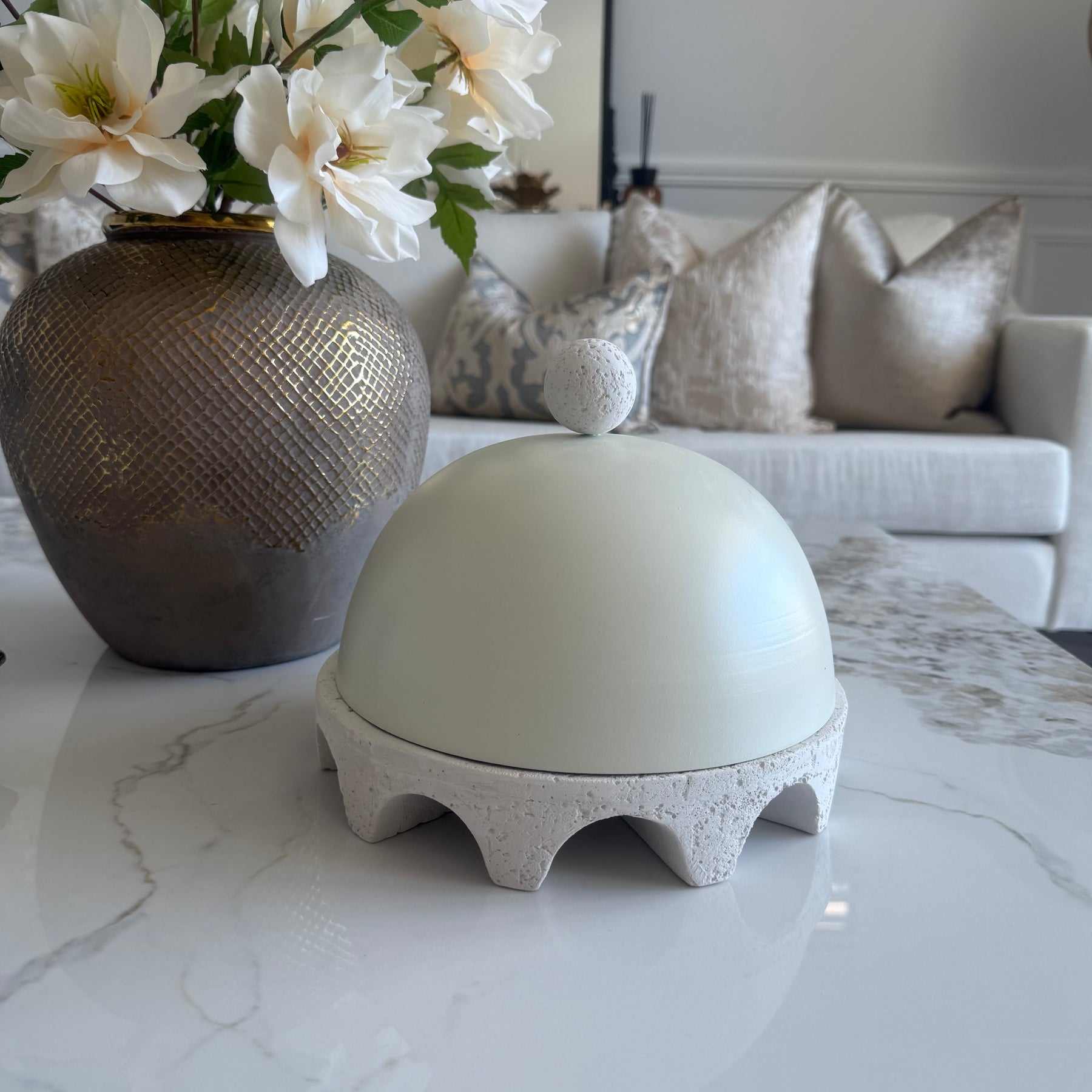 White stone Moroccan platter dome