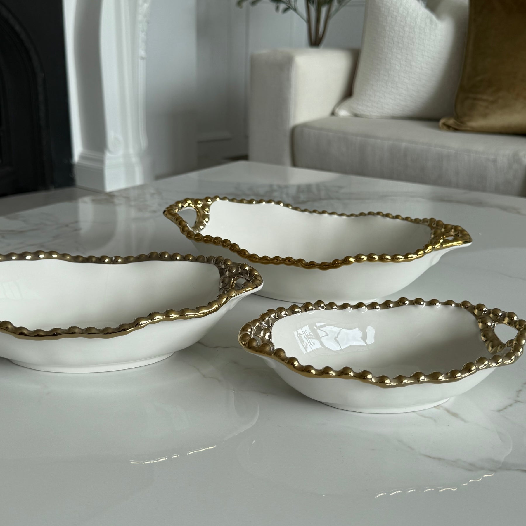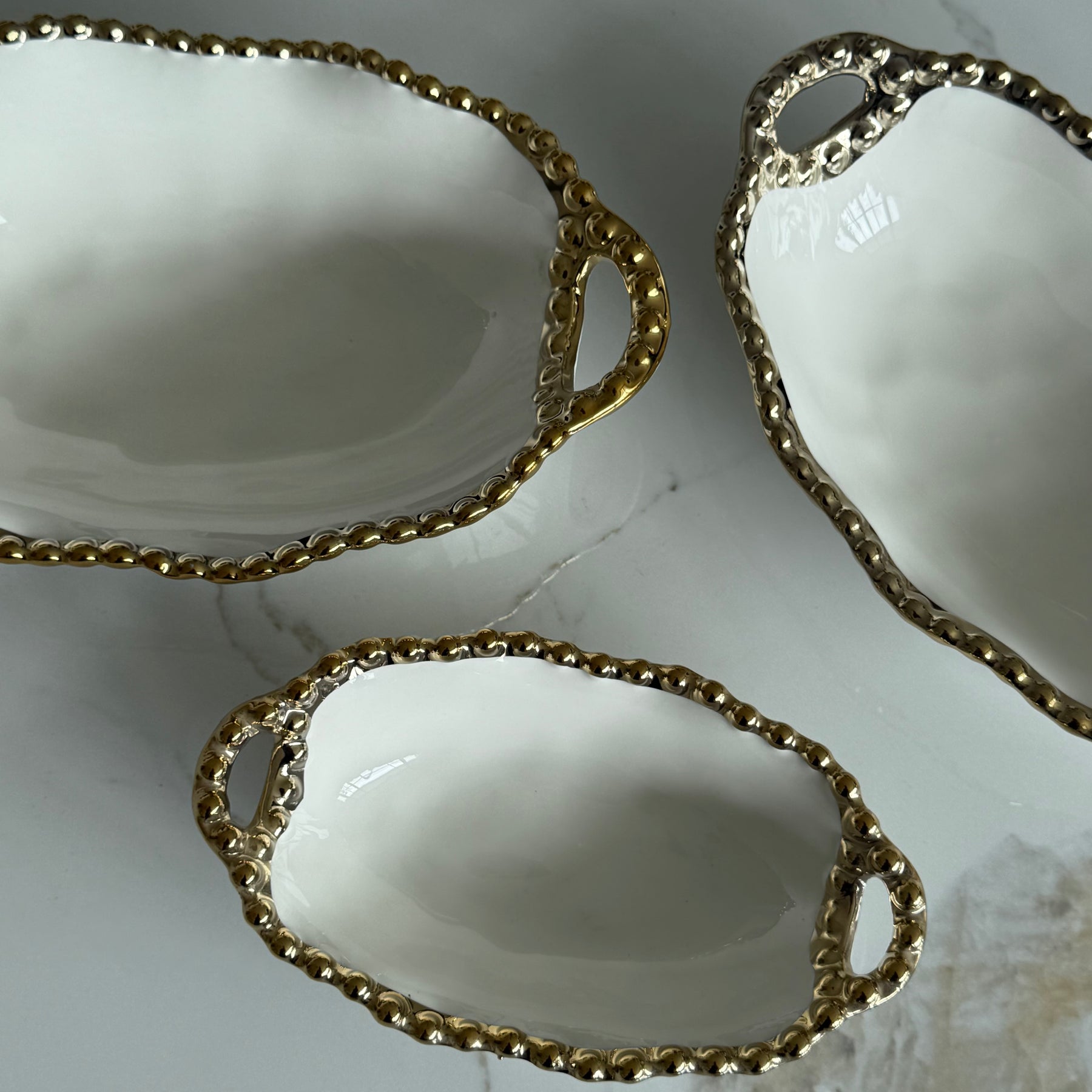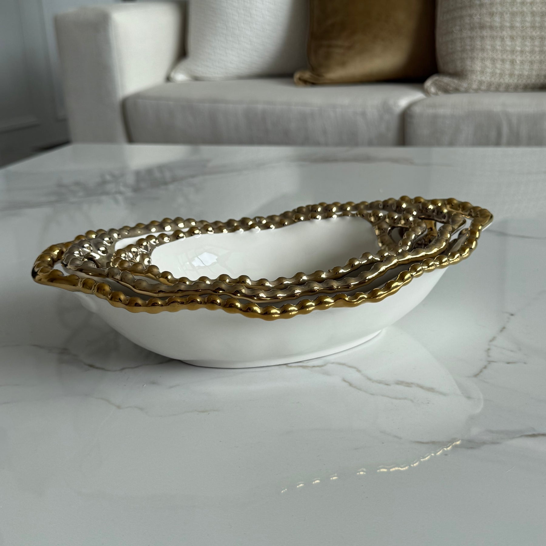 Gilded Pearl Oval Handled Serving Bowl