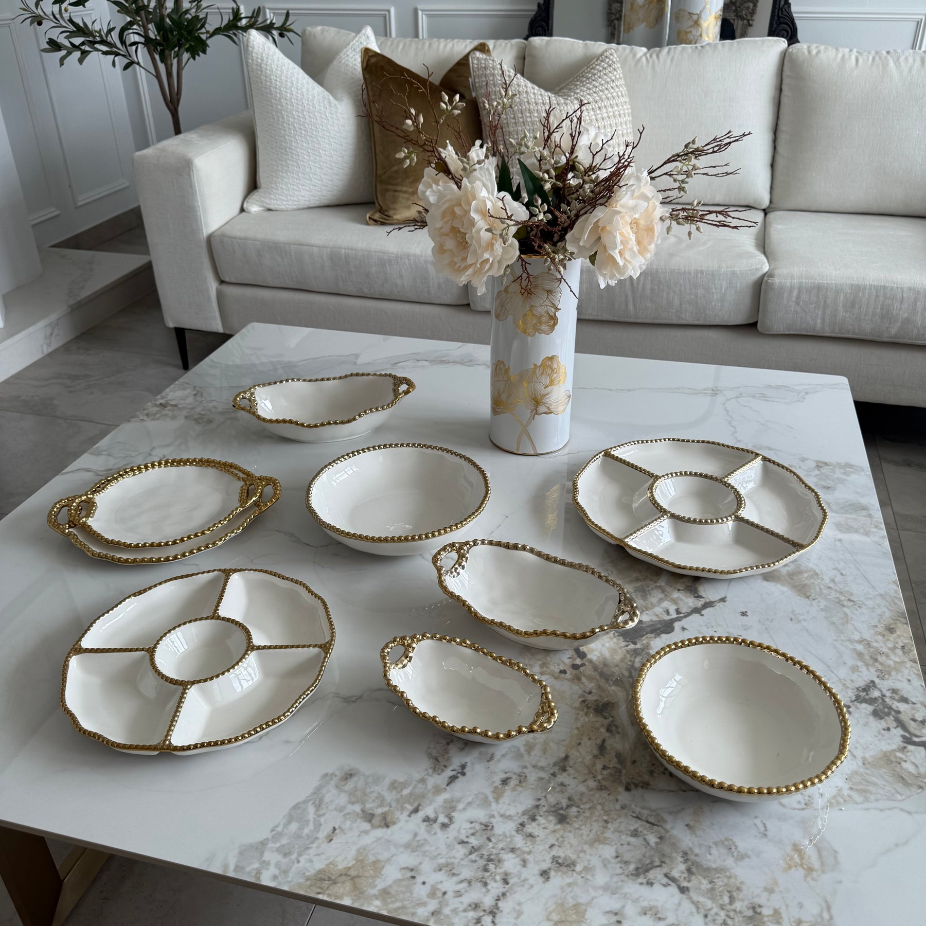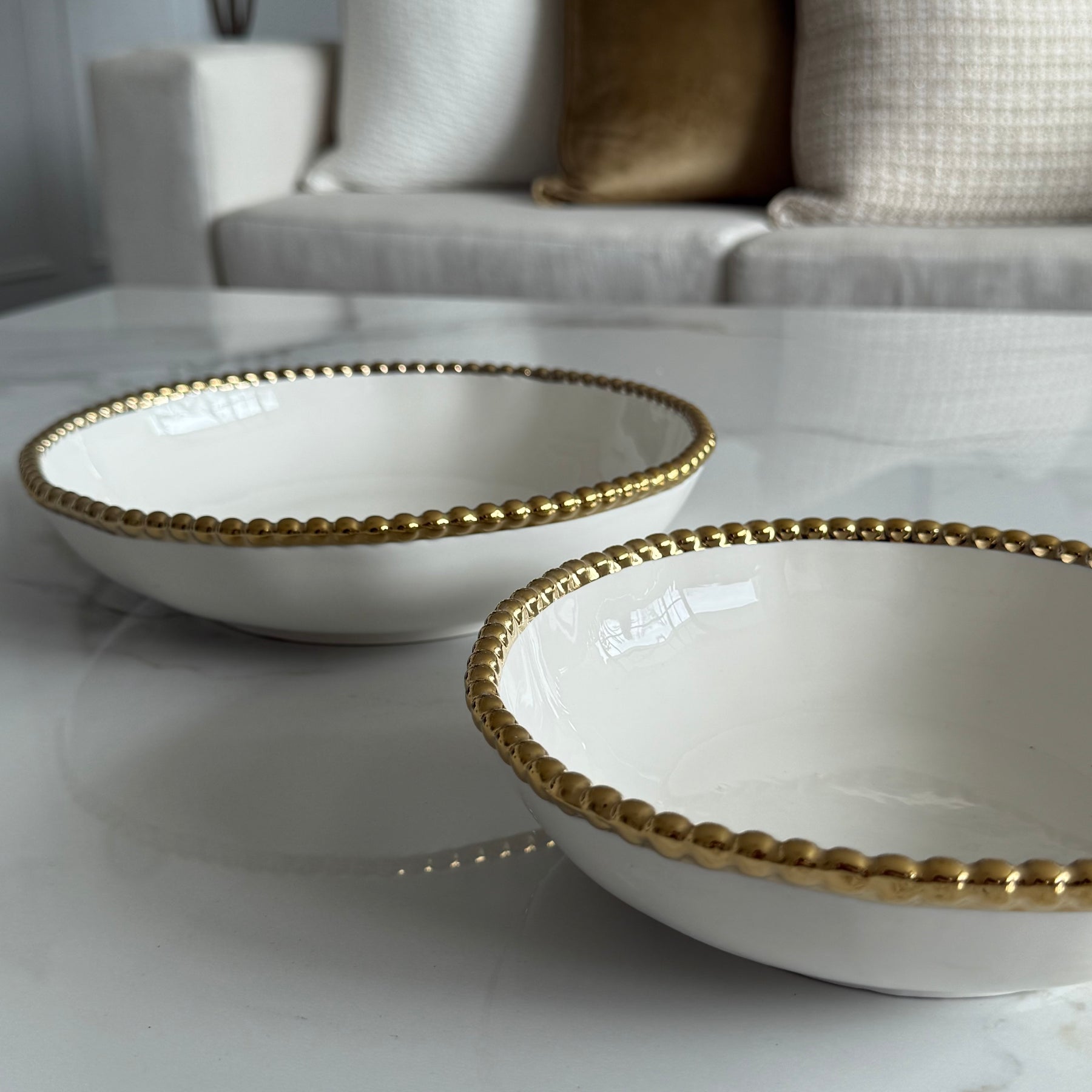 Gilded pearl Shallow Serving Bowls
