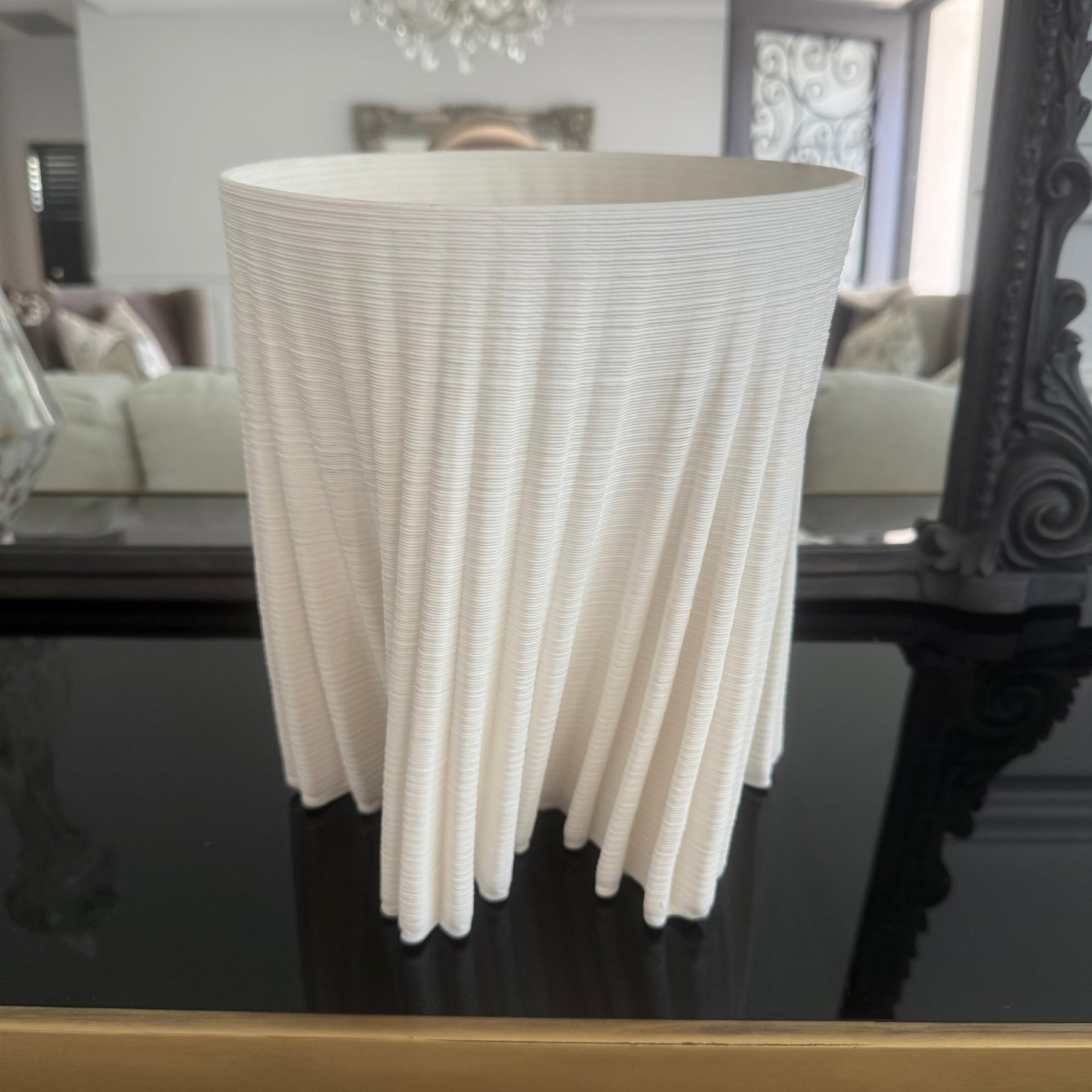 This very impressive sculptural 3D-printed vase in ivory is perfect for faux flowers or as a decorative piece. For adding water, simply insert a small waterproof vessel inside the pot.