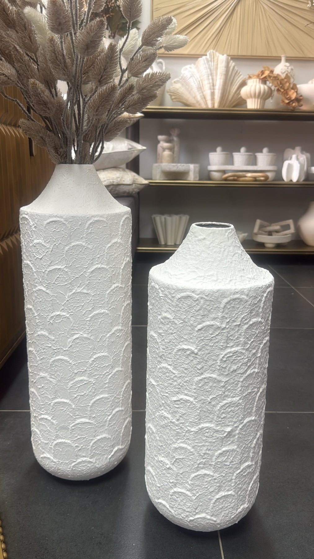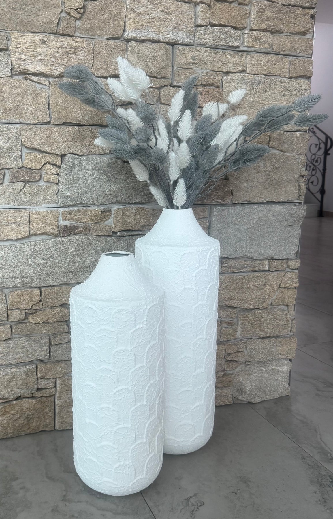 White stone effect floor vases