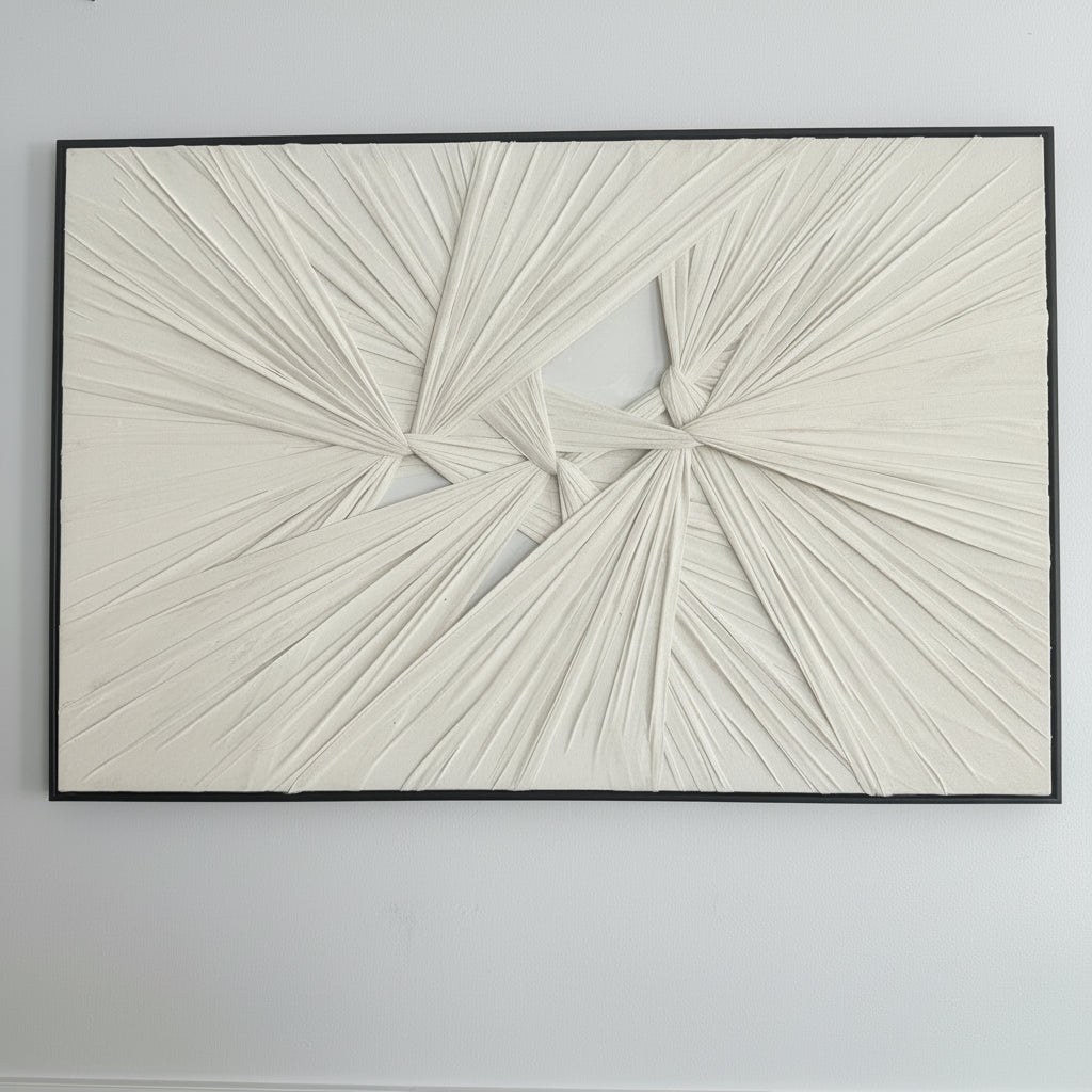 This is a framed wall art piece featuring elegantly draped fabric stretched in radiating patterns.